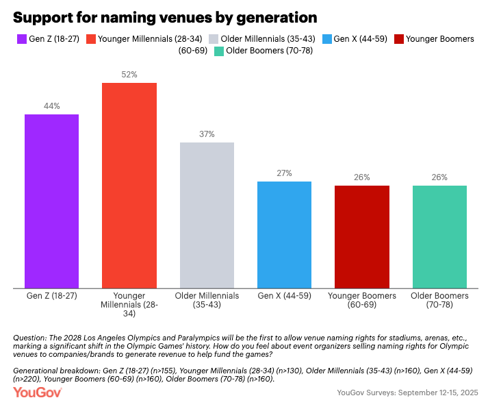 Younger Millennials (28-34) showed strongest support at 52%, while older Boomers registered just 26%.